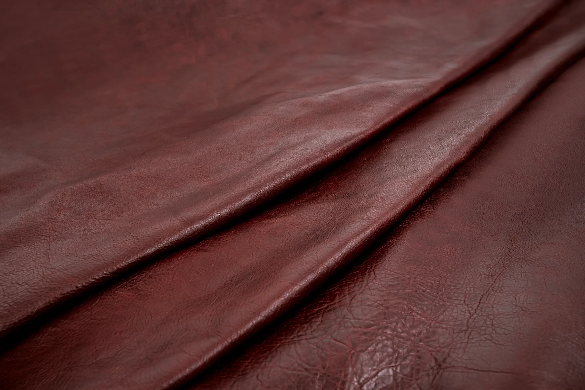 Flor corregida, curtido al cromo, recurtida con vegetal y ceras de tambor (Hotstuff). Acabado con ceras, resinas y anilinas. Con ligero efecto pull up.